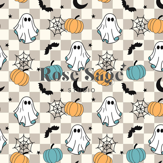 Retro Halloween Cookies and Milk Seamless Pattern File