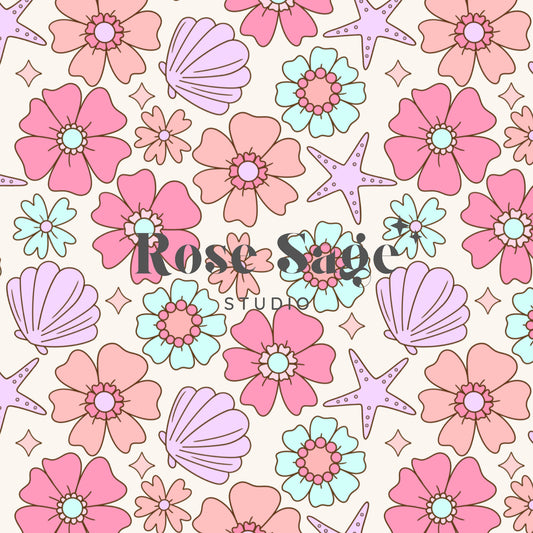 Summer Floral Seashell Seamless Pattern File